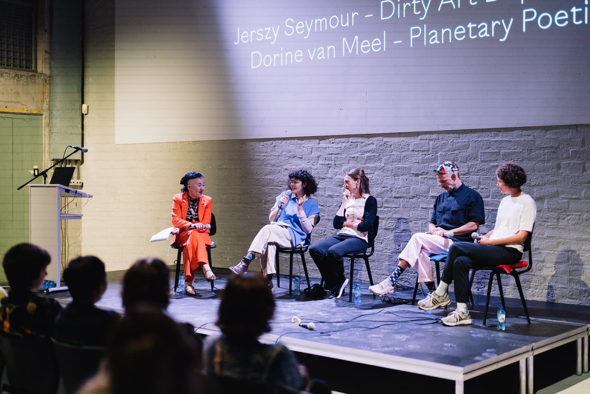 Panel with heads of department: Gertrude Flentge & Lara Khaldi (Lumbung Practice), Jerszy Seymour (Dirty Art Department), Dorine van Meel (Planetary Poetics), moderated by Flavia Dzodan.